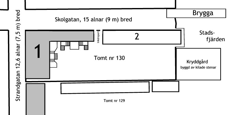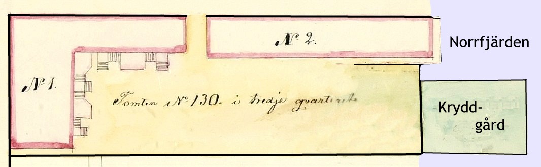 År 1830 hade den nya stadsplanen tagits i bruk och tomten hade nu fått numret 130. Den obebodda tomten nr 130 innehades av grannen Gottfrid Starcke som var förmyndare för Adolf Hallman.